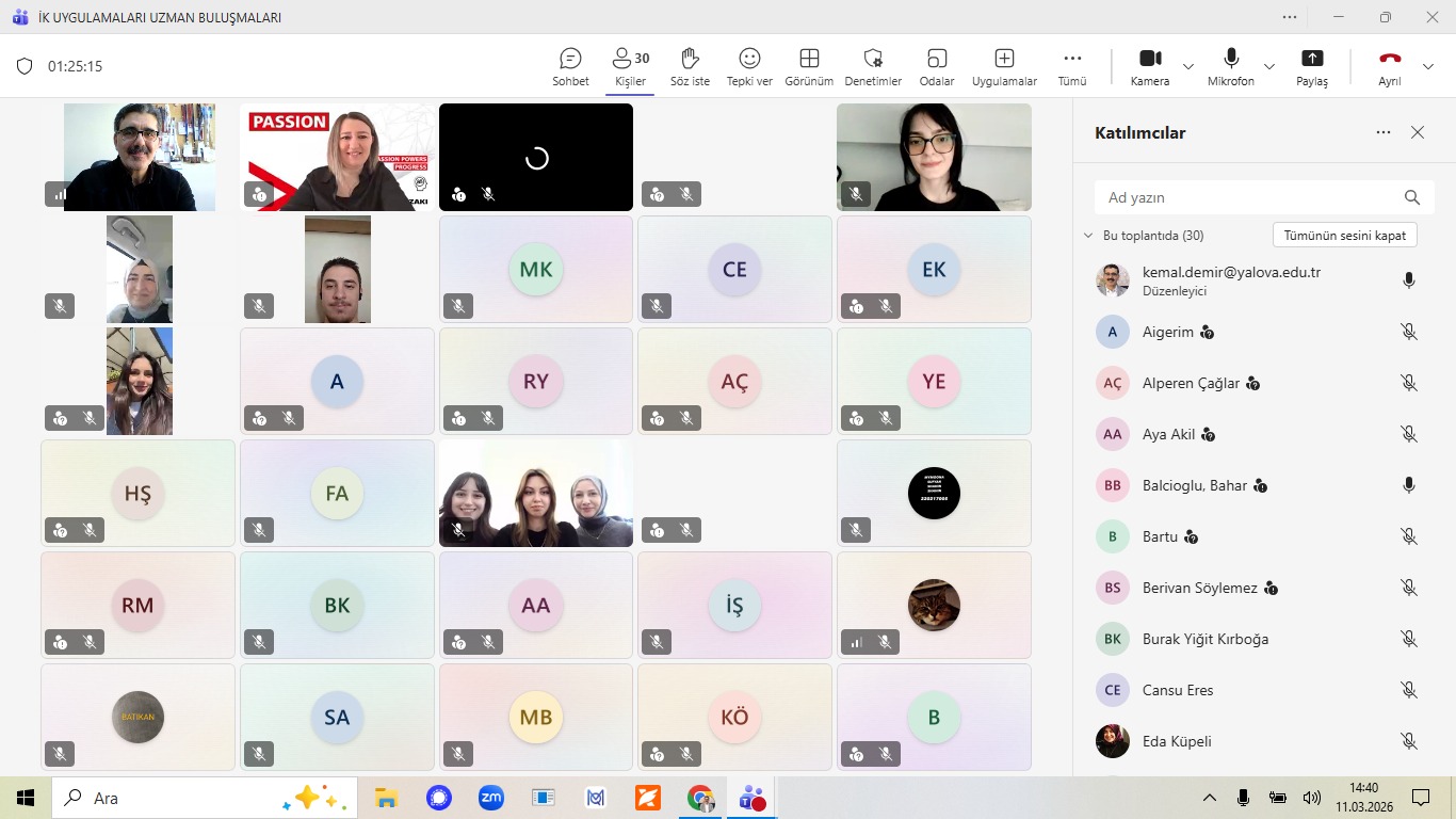 Yalova Üniversitesi İşletme Bölümü bünyesinde yürütülen "İnsan Kaynakları Uygulamaları" dersi, sektörün profesyonellerini öğrencilerle buluşturmaya devam ediyor. Dersin sorumlusu Dr. Öğr. Üyesi Kemal DEMİR’in koordinatörlüğünde ve moderatörlüğünde 11.03.2026 tarihinde düzenlenen çevrimiçi etkinliğin bu haftaki konuğu, Yazaki Mudanya İK Uzmanı Bahar BALCIOĞLU oldu.