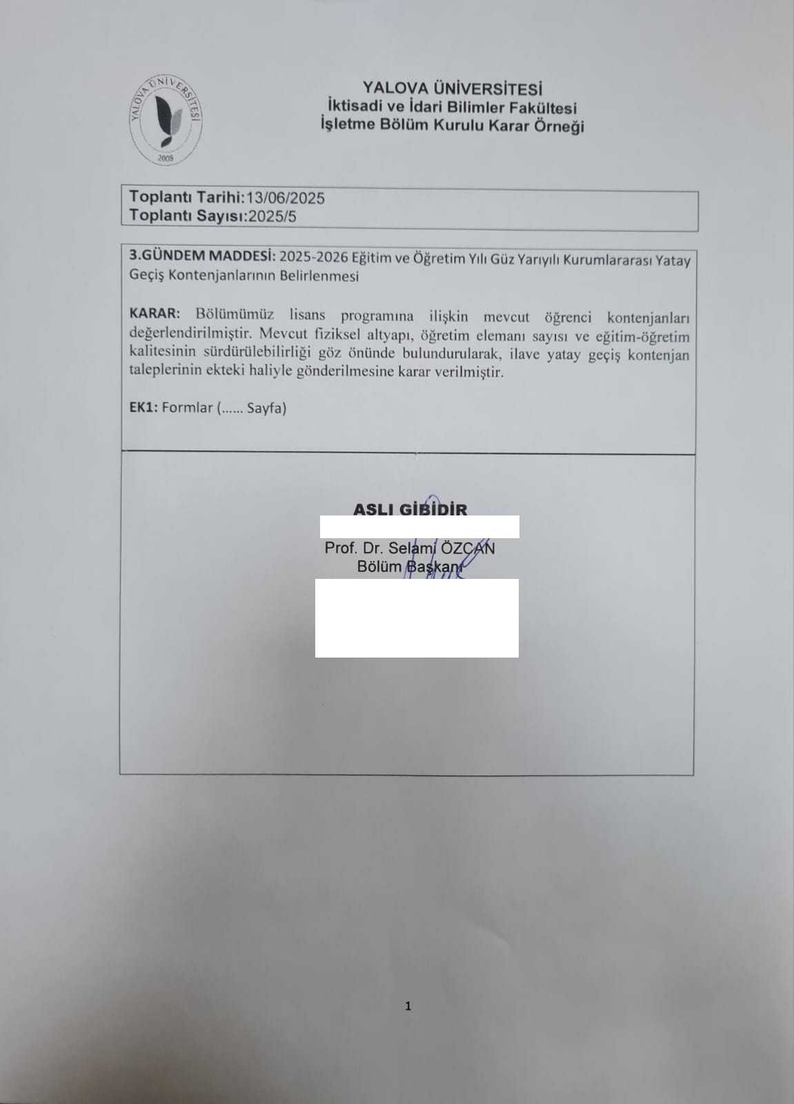 24.03.2025 Tarihli Bölüm Kurulu Karar Örneği